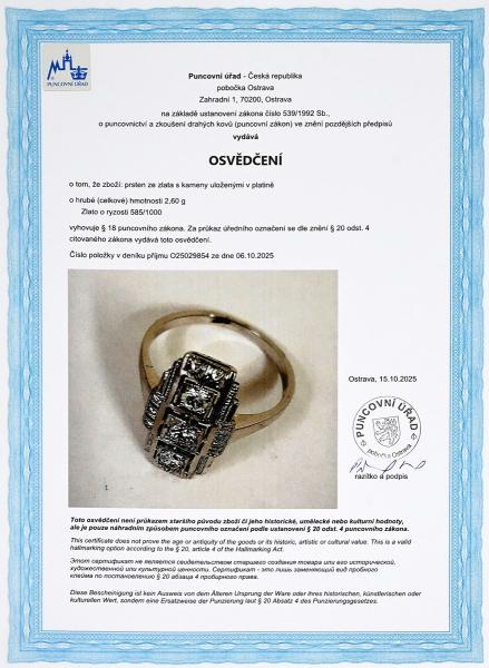 Starožitnost: Zlatý prsten s diamanty 0,31 ct Art Deco