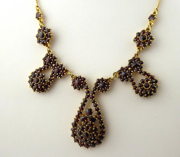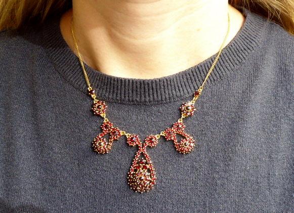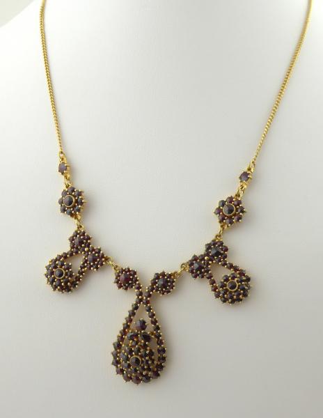 Starožitnost: Zlacený stříbrný náhrdelník - Granát, Turnov
