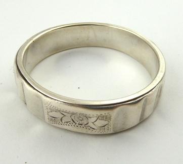Starožitnost: Stříbrný kruhový náramek s gravírováním