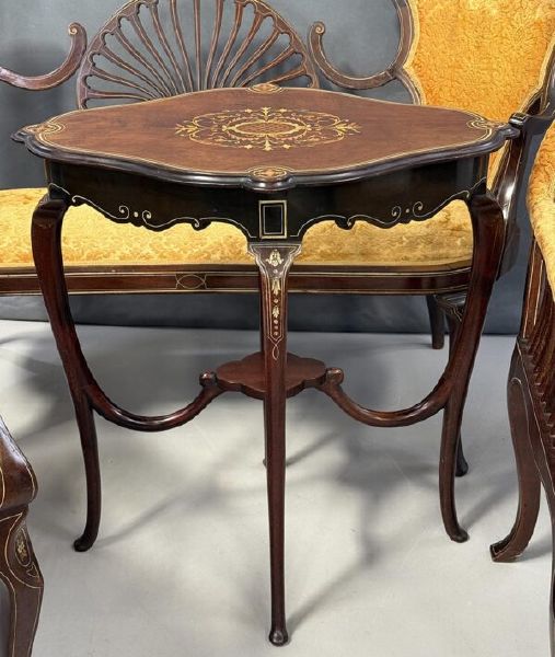 Starožitný intarzovaný pokoj v klasicistním stylu zdobený kořenicovou dýhou,...