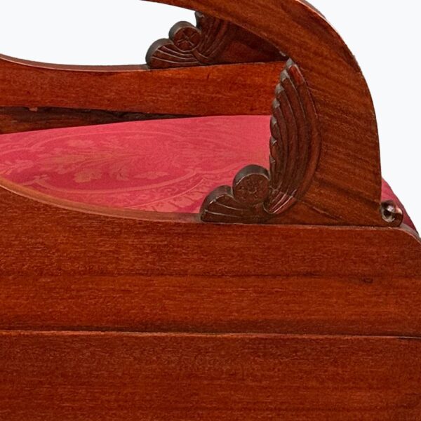 1900 – 1910, masivní dřevo v kombinaci s mahagonem, opraveno šelakovou politurou a nově čalouněno, cena je uvedena za pár, výška sedáku: 44 cm