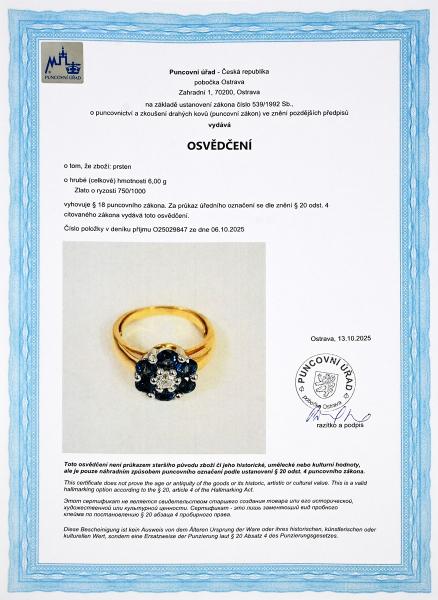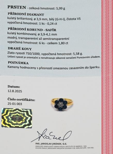Zlatý prsten s přírodním diamantem a safíry - detail inzerátu