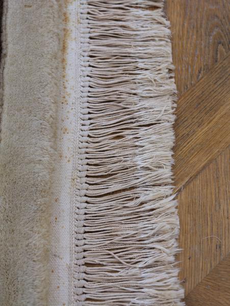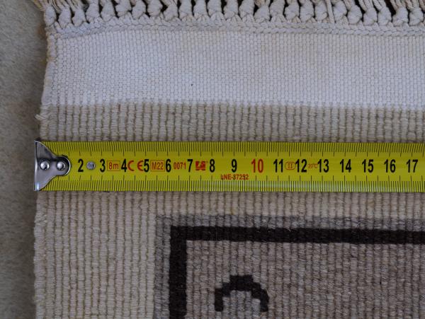 Rozměry: délka s třásněmi 306 cm, bez 283 cm, šířka 185,5 cm, tloušťka 1,5 cm