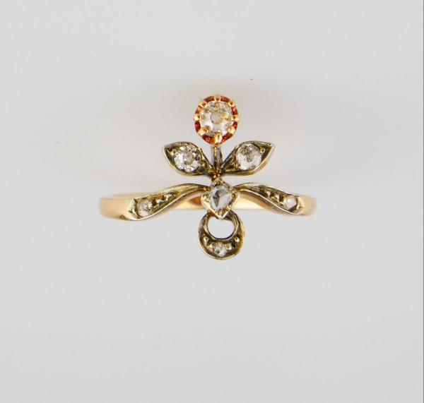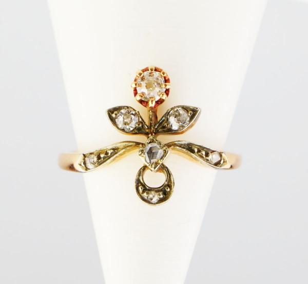 Starožitnost: Secesní zlatý prsten s diamanty