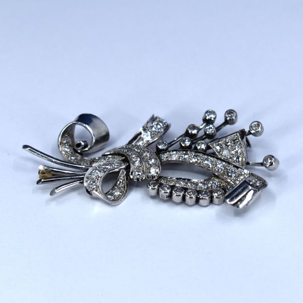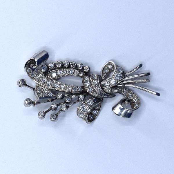 Platinová art deco brož s diamanty, 1960