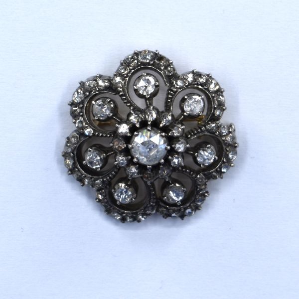 585/1000, v. 10,65 g, diamantové routy, 4. čtvrtina 19. století, fasováno ve stříbře, APÚ, průměr 26 mm