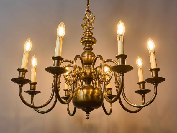 Starožitnost: Osmiramenný vlámský lustr. Zrenovovaný