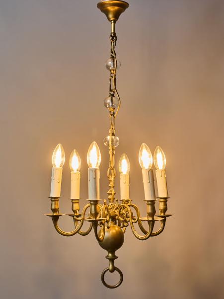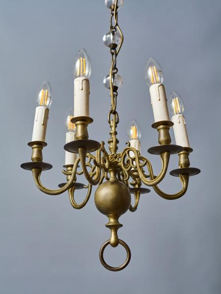 Starožitnost: Starožitný šestiramenný bronzový lustr