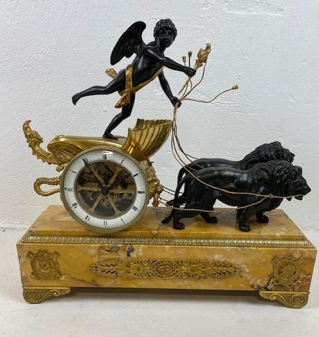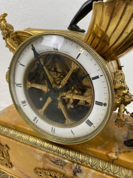 Empírové stolní hodiny B mramor-bronz 45*42*13 bohatě zdobené