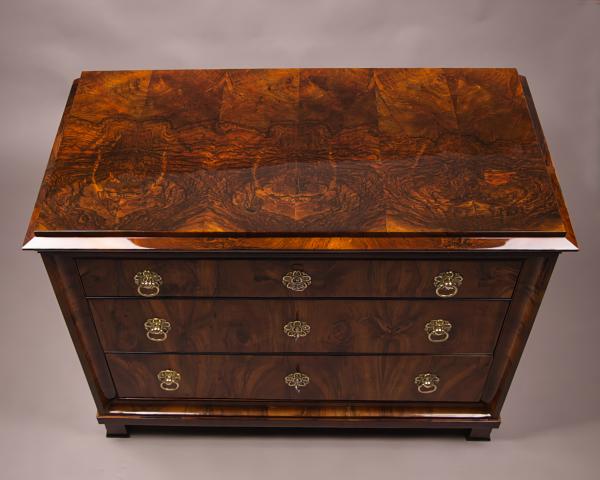 Luxusní biedermeierová komoda s ořechovou kořenicovou dýhou, cca 1830