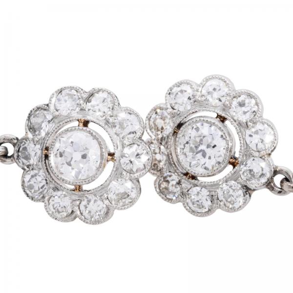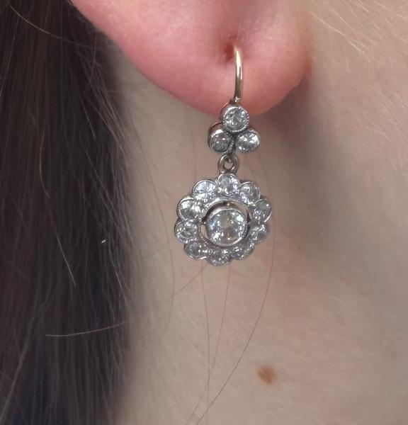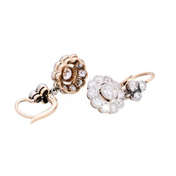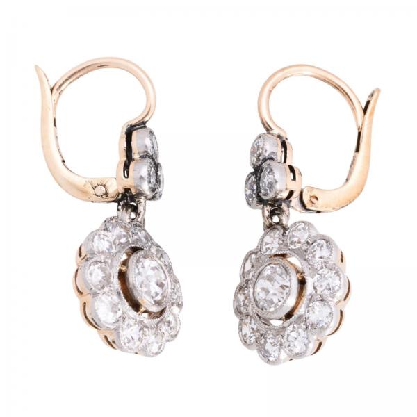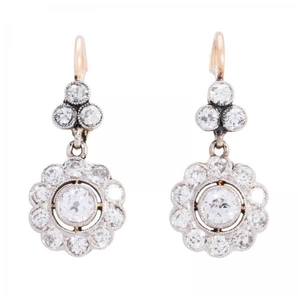 Luxusní starožitné zlaté náušnice osazené přírodními diamanty starého evropského brusu o celkové hmotnosti 2 ct Vs - Si, H - I,