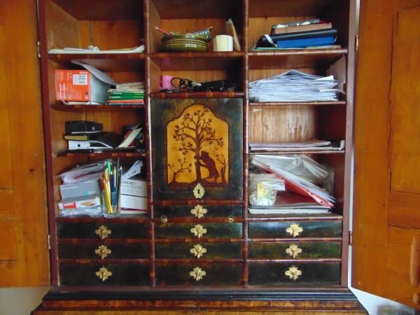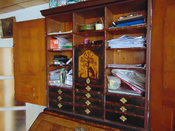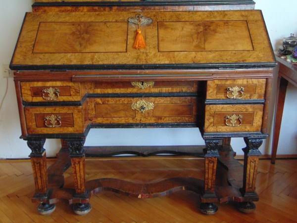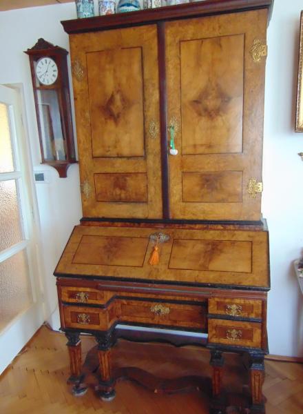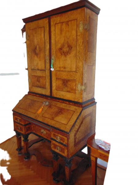 Sekretář-talířník v barokním stylu 152*230*65 zdobený kořenicovou dýhou