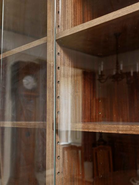 Krásná anglická knihovna s vrchní prosklenou částí a spodní plnou částí...