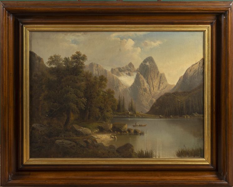 Starožitnost: 58. Alpská krajina s jezerem a loďkou