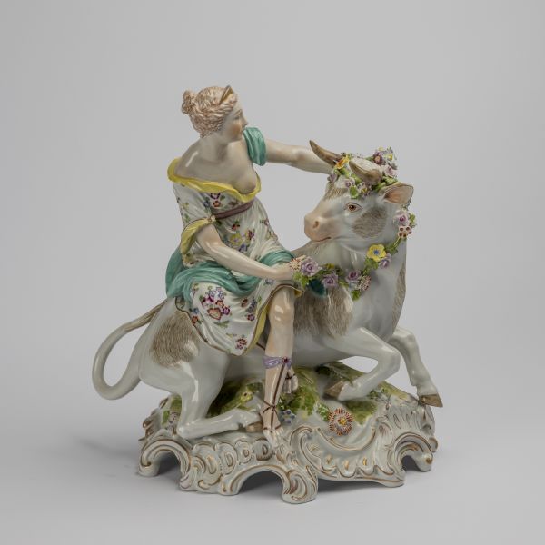 Art deco větší porcelánová plastika, únos Evropy, bílý glazovaný porcelán -...
