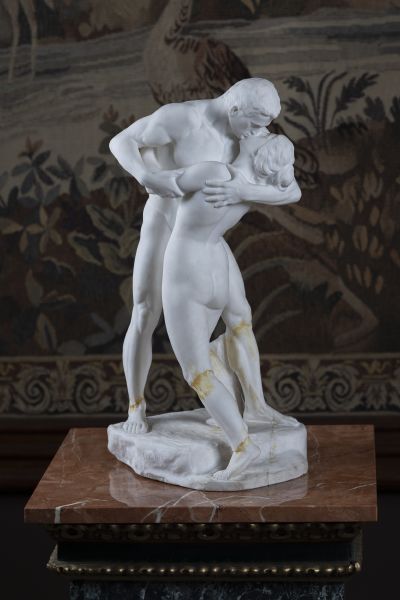 Plastika, Milenci, signováno monogramem, datováno, rozměry: 26 x 17 x...