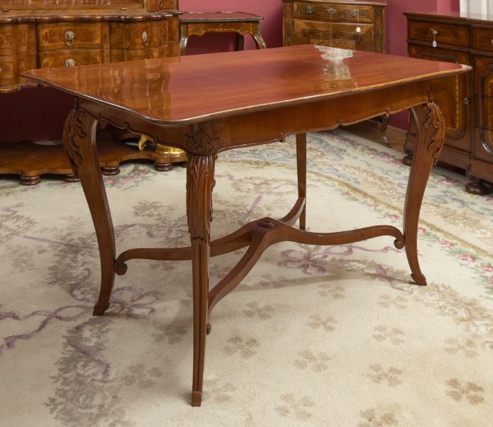novodobé, dřevo, řezané, čtyři nohy spojené trnoží, lub stolu zdoben...