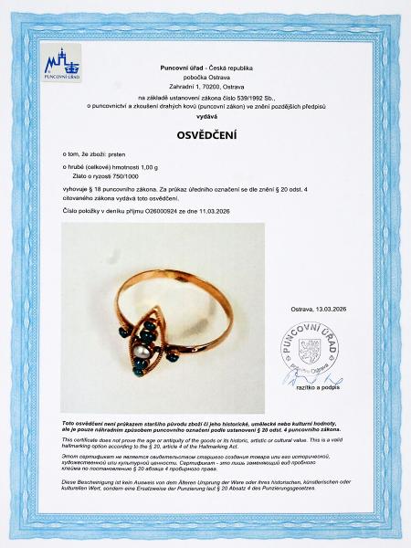 Materiál: žluté zlato o ryzosti 750/1000 Hmotnost: 3,68 g Rozměry: velikost...