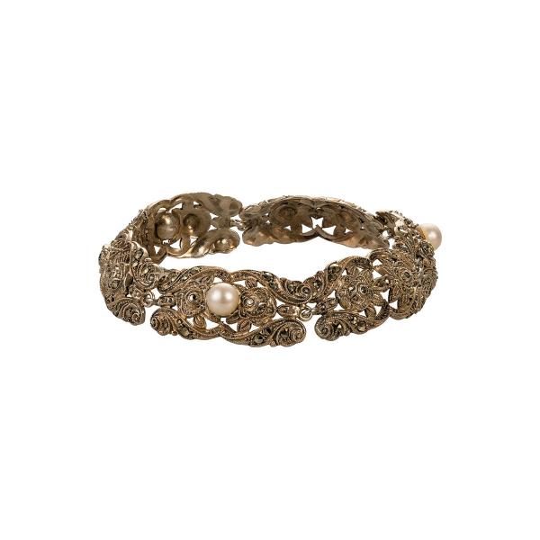 Starožitnost: Stříbrný filigránový náramek s perlami