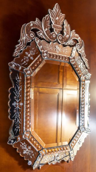 2. pol. 20. století, Čechy, osmiboký tvar se zdobeným probrušovaným zrcadlovým rámem