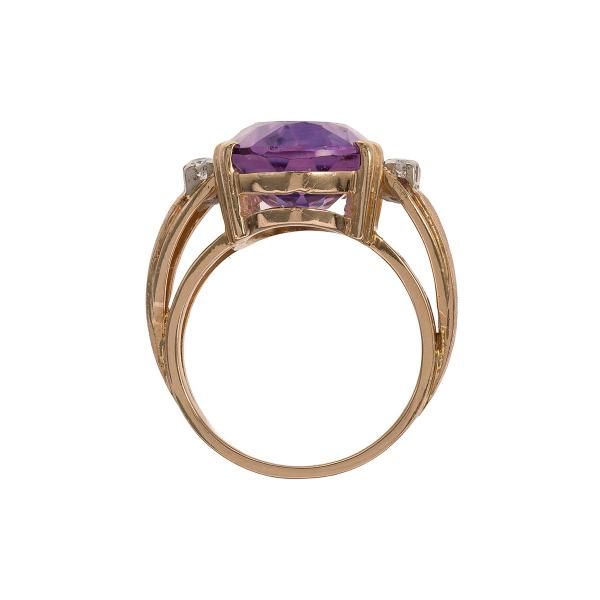 Starožitnost: Prsten s přírodním ametystem a diamanty