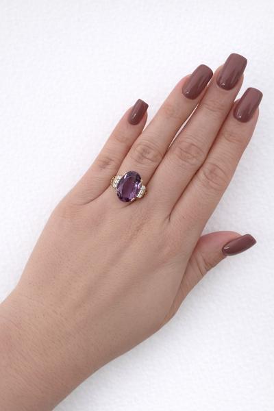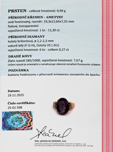 Prsten s přírodním ametystem a diamanty - detail inzerátu