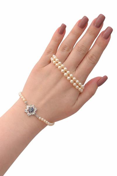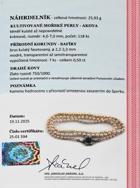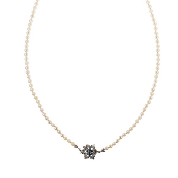 Starožitnost: Náhrdelník z perel Akoya a přírodním safírem