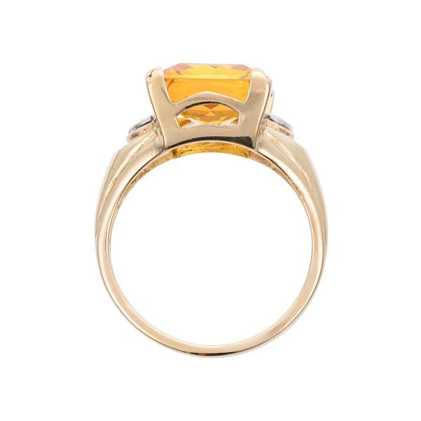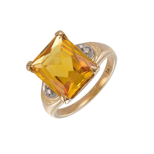 Starožitnost: Citrínový prsten ze žlutého zlata s diamanty
