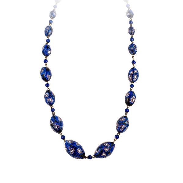 Rozměry: délka náhrdelníku 88 cm, dominantní středový oválný millefiori korálek o rozměrech 2,7x1,6 cm