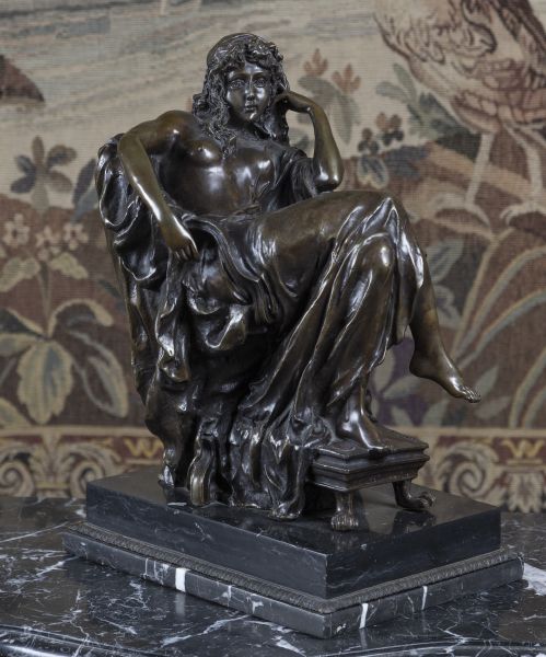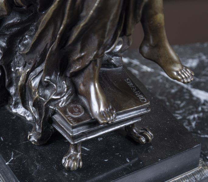 novodobé, bronz, hnědá patina, označený autorem Carpeaus a medailí, černá mramorová základna