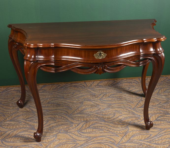 20. století, Itálie, ořechové dřevo, částečně dýhované, řezané, čtyři esovité nohy, pod profilovanou deskou zásuvka