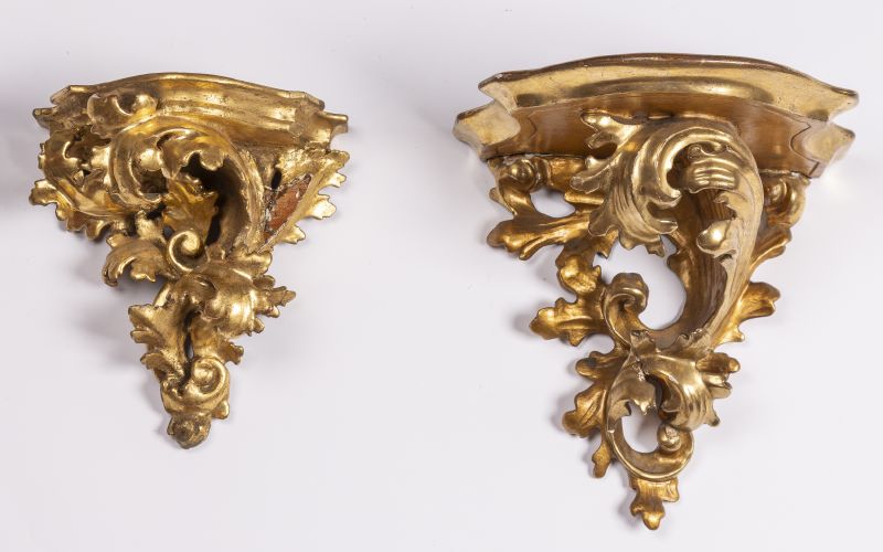 20. století, dřevo řezané, zlacené, lehce poškozeno výška 19 a 23 cm