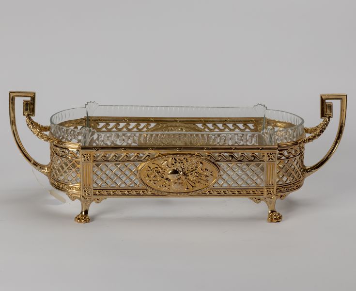 2. třetina 20. století, WMF Německo, mosaz zlacená, původní vložka z čirého broušeného skla