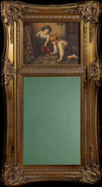 novodobé, dekorativní zlacený rám, v horní čádti malba dětí, olej/dřevo