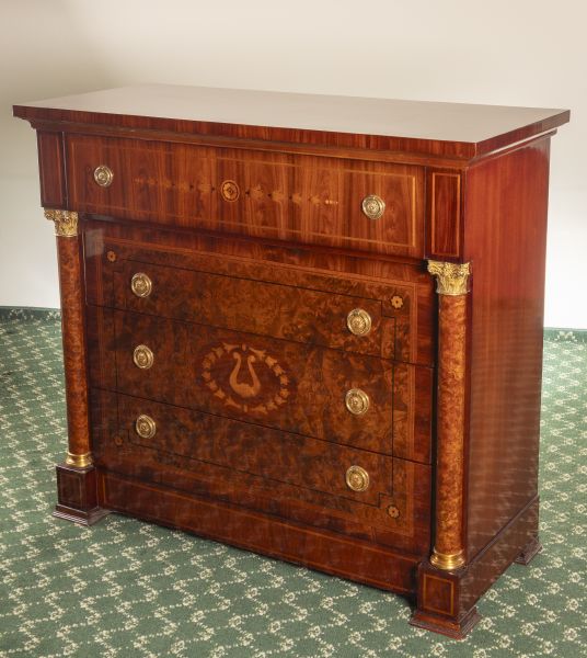 Komoda vyrobena okolo r. 1835, Německo, oblast Baden. Materiál ořechová dýha...