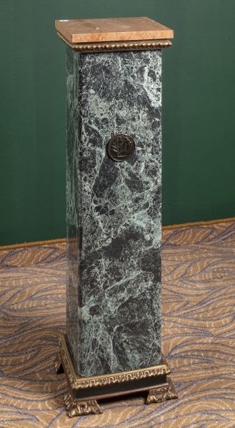 novodobé, růžový a zelený mramor, bronzová základna, hranolový tvar