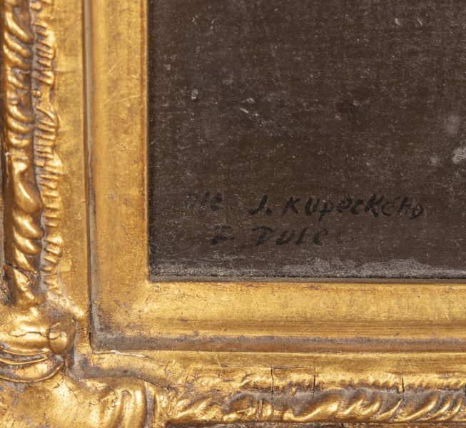 Portrét dámy s violou, novodobé, olej/plátno fix. na kartonu, na zadní straně popsáno "Dle Kupeckého F. Dulec", dekorativní rám
