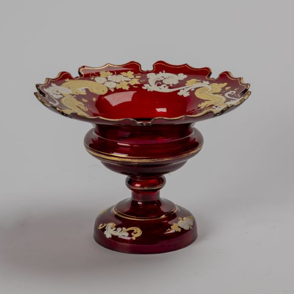 2. pol. 19. století, Čechy, sklo rubínové, malba rokají emaily a zlatem