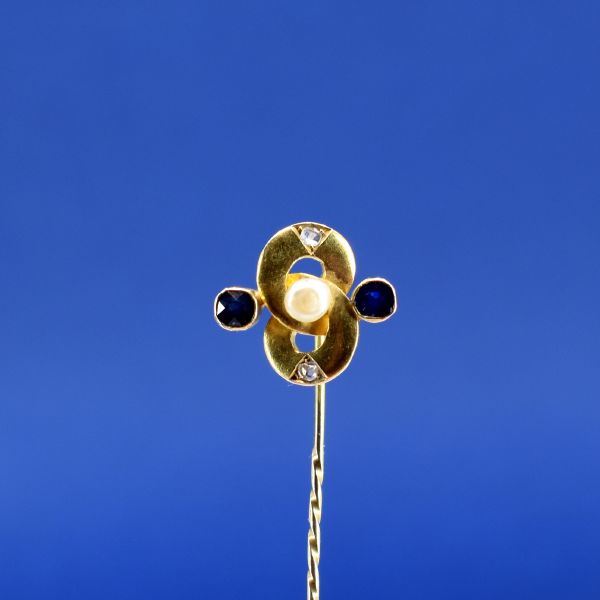 585/1000, v. 2,45 g, perlička, přírodní safíry, kolem 1900 čs. punc