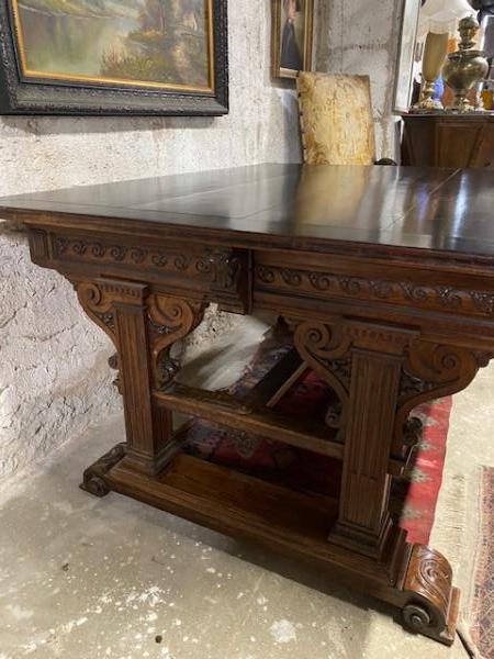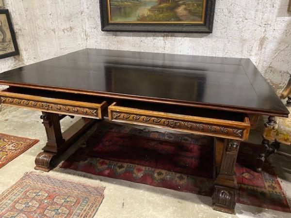 Jídelní stůl se zásuvkami a bohatě řezbovanou trnoží 160*75*120