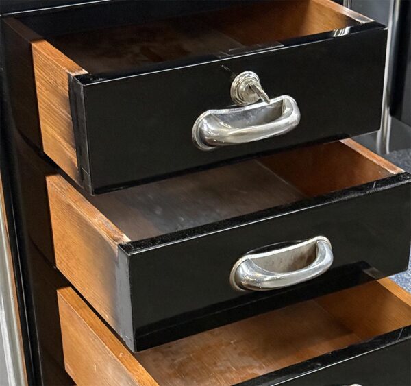 Chromová konstrukce je původní, pouze odborně vyčištěná a vyleštěná. Dřevěné části profesionálně restaurovány do vysokého lesku.