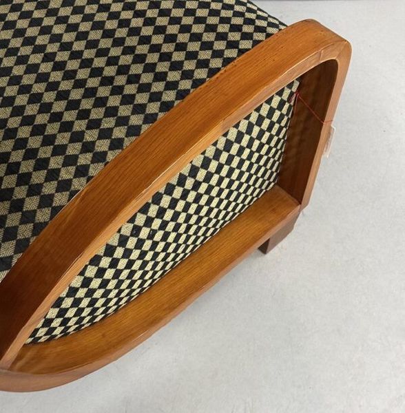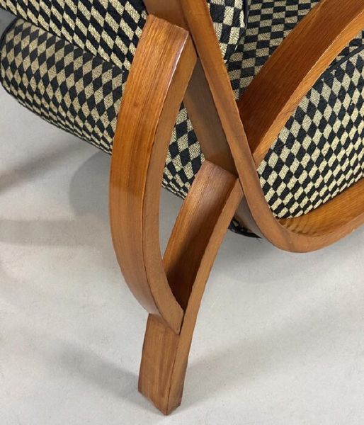 polohovací křeslo, masiv dub, čalounění původní, zatím nerestaurováno.