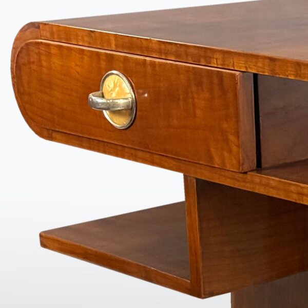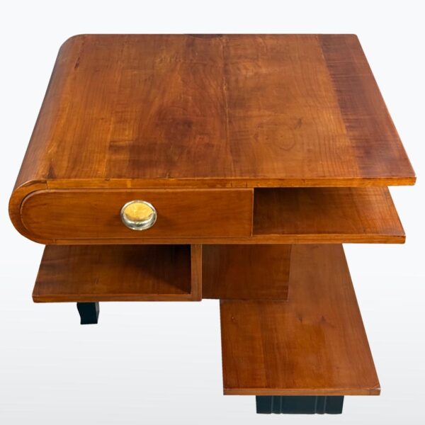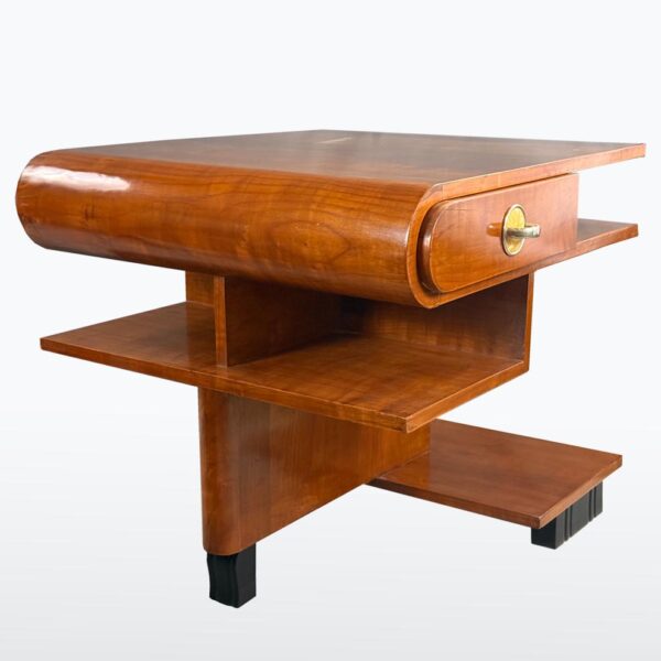 1930, třešeň, látka, chromové kování s perletí, odborně restaurovány šelakovou politurou, nově očalouněno