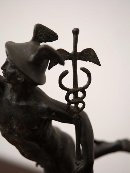 Starožitnost: Bronzová socha Merkura na mramorovém podstavci