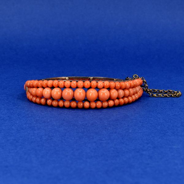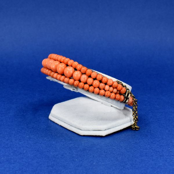 Granátový náramek, třířadý, dvě řady granátů se stupňovitě rozšiřují do tří....