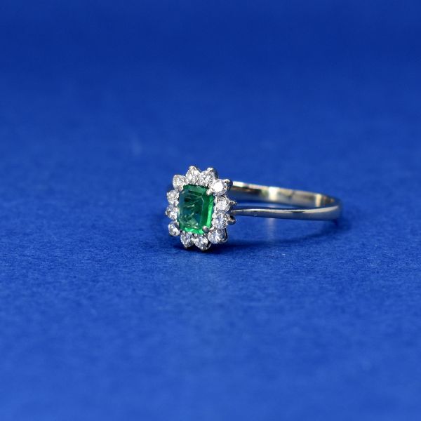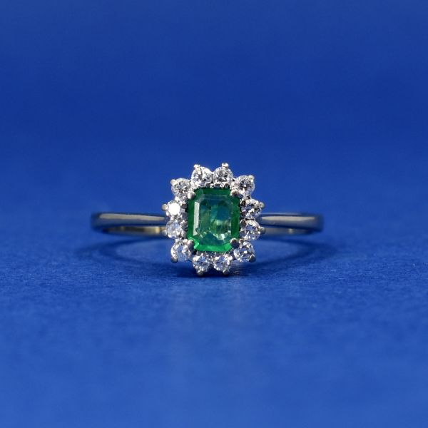 Starožitnost: Bílozlatý prsten se smaragdem a brilianty