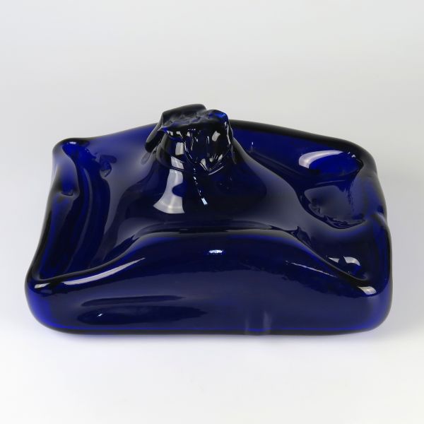 Modrá růže, 1972, sklo kobaltově modré, foukané, hutně tvarované, signováno K. Wünsch 72, 1018-2