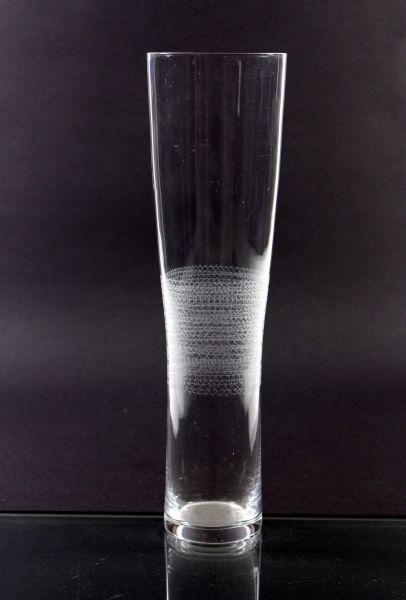 Váza, 1961, sklo čiré, lineárně ryté, Ateliéry Borského skla Nový Bor, autorská práce, signováno a datováno, Lit.: Tvar 1961/3, s.80, obr. 218, výška 26,5 cm, 1022-4