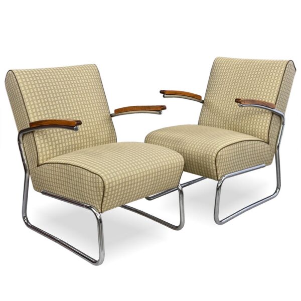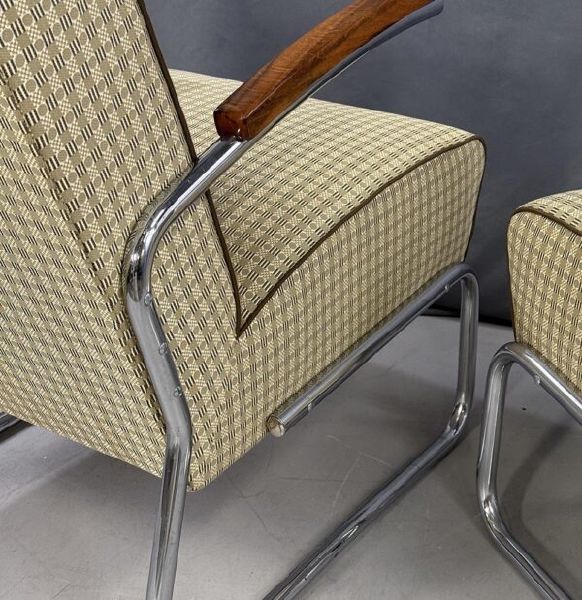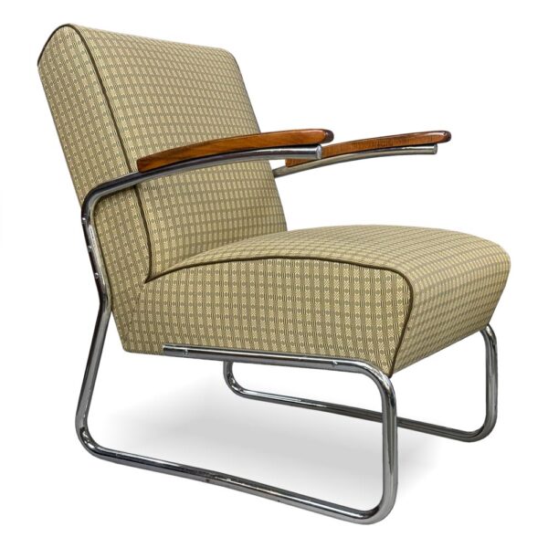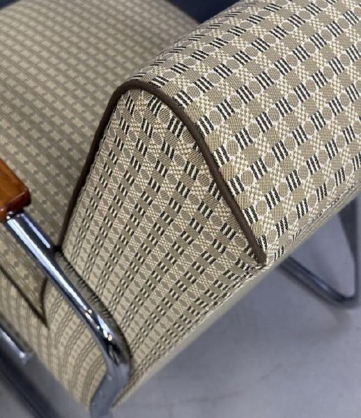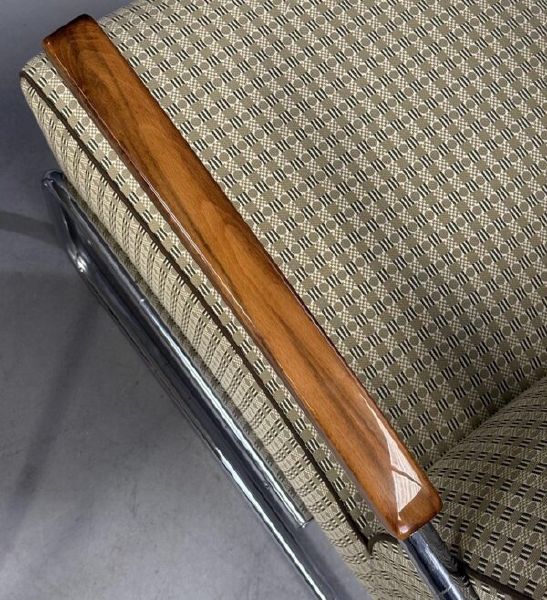 funkcionalismus, chromovaná trubková konstrukce, dřevo, textil