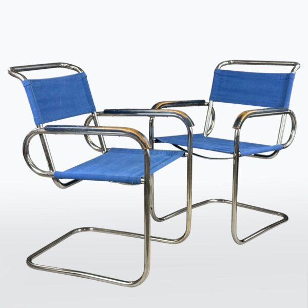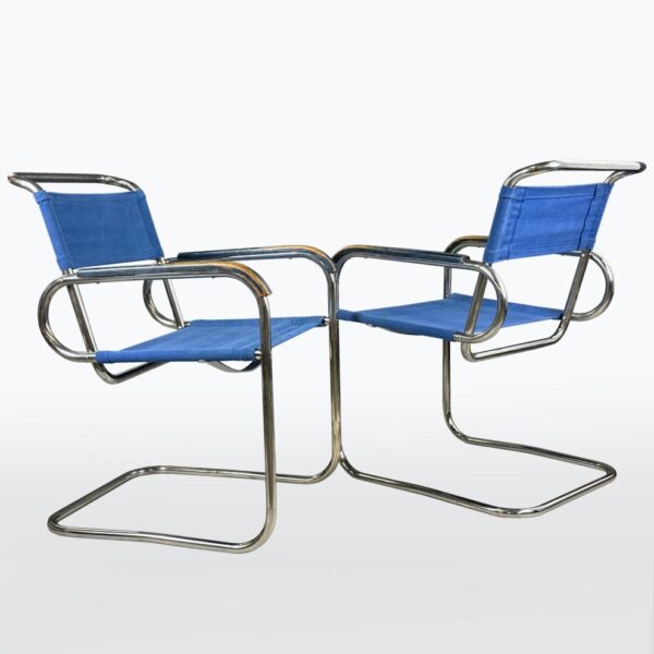 Vzácný pár chromovaných trubkových křesel, katalogový model B46, od světoznámé značky Thonet, model: B46